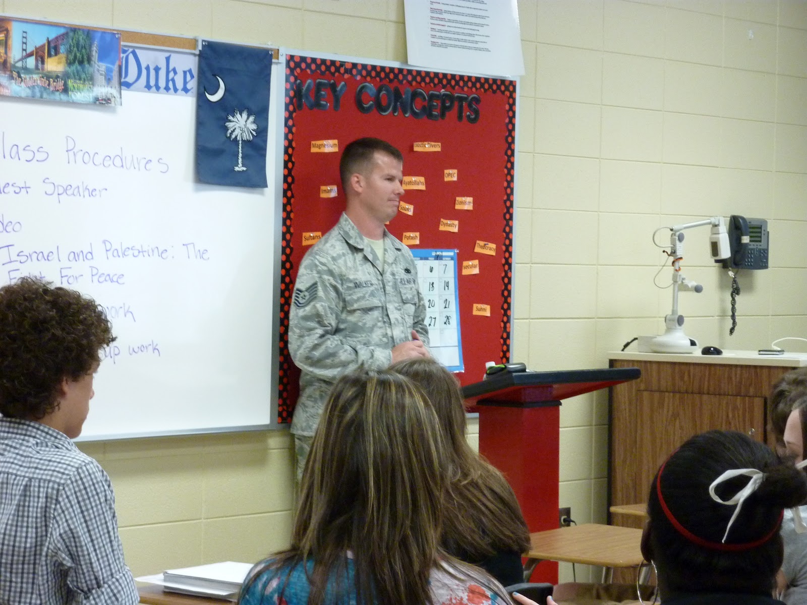 Sgt. Walker from the U.S. Air Force spoke to several classes about his travels abroad and careers in the Air Force. Students learned about the requirements for entry into the Air Force, job opportunities, and about different cultures and customs. For more information about the Air Force, visit http://www.airforce.com/.